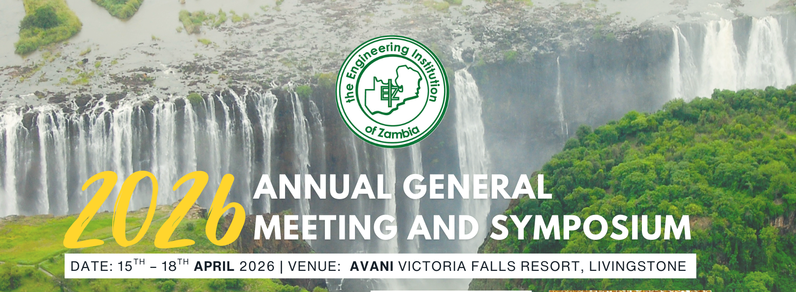 The Engineering Institution of Zambia (EIZ) invites all engineers, technologists, technicians, craftsperson's, students, and industry stakeholders to be part of the 2026 EIZ Annual General Meeting and Symposium, taking place from 15th to 18th April 2026 at the scenic AVANI Victoria Falls Resort, Livingstone.